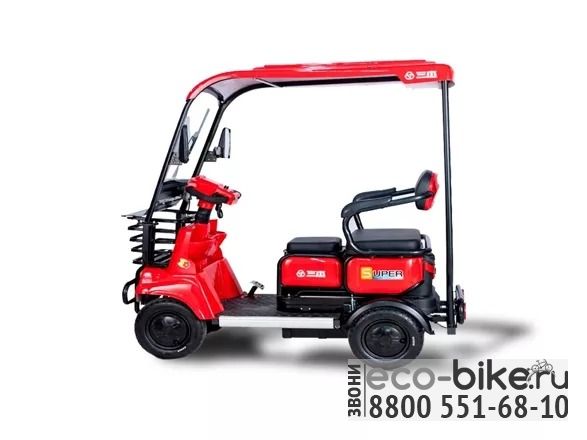 Четырехколесный электромобиль ROOF 4-trike 2+1 1000 Вт с крышей прошел рестайлинг в 2023 году и получил обновленный внешний вид, новую оптику, ЖК-дисплей, крышу и лобовое стекло. ROOF 4-trike 2+1 1000 Вт с крышей обладает удобной посадкой, отличается простотой в управлении.
